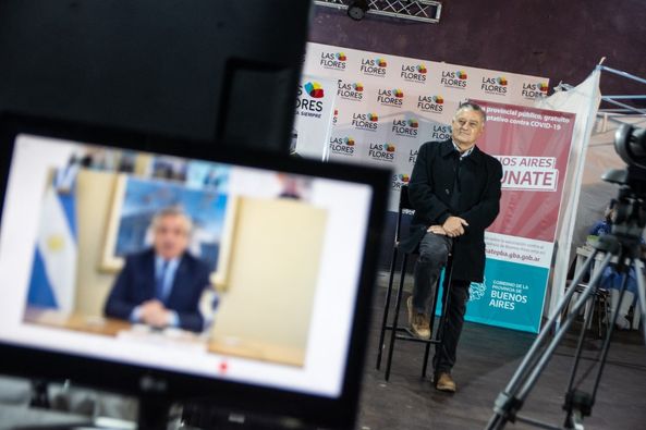 También se comunicaron durante la presentación con el jefe de Gabinete bonaerense, Carlos Bianco, quien se encontraba en el vacunatorio instalado en la Universidad Tecnológica Nacional (UTN) de Bahía Blanca, junto al intendente Héctor Gay; y estuvieron presentes desde Pilar la vicegobernadora Verónica Magario; el ministro de Salud, Daniel Gollan; y el intendente Federico Achával. En tanto que vía remota participaron jefes y jefas comunales de toda la Provincia.