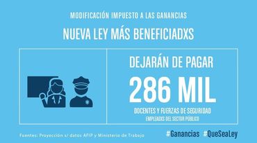 Que, en el ámbito de la Provincia de Buenos Aires dejaría de pagar el 67% de trabajadores y jubilados, y en algunas provincias el beneficio alcanzará al 80% de los actuales contribuyentes.