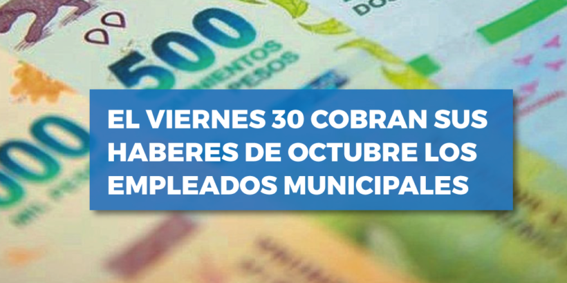 La Secretaría de Economía y Finanzas informa a todos los empleados y agentes municipales de planta permanente, jornalizados y Procem, que el próximo viernes 30 tendrán depositados sus haberes del mes de octubre.