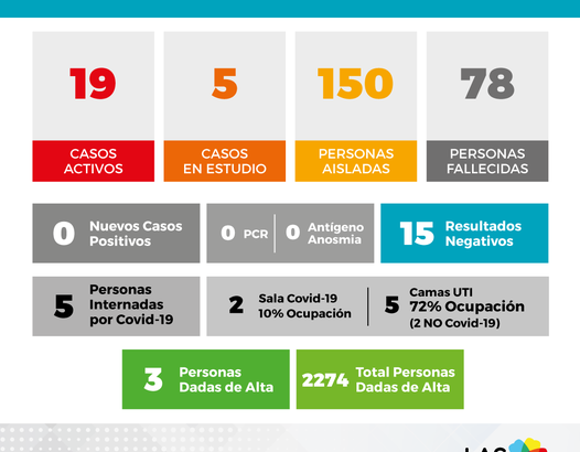 Al día de la fecha hay un total de 19 casos activos por Covid-19.
