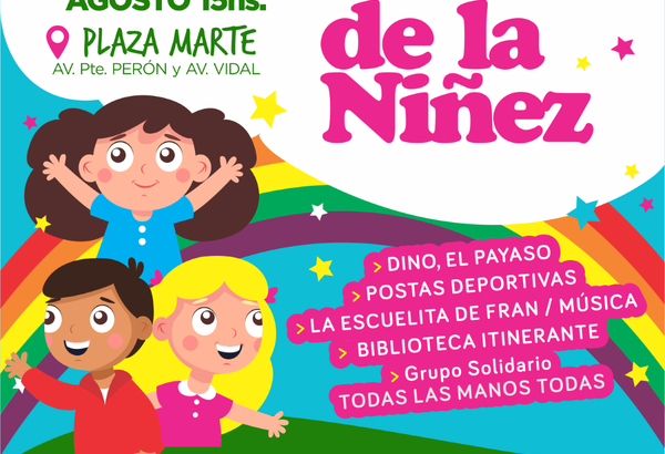 📅 El domingo 15 desde las 15 hs y hasta las 17 hs en la Plaza Marte, ubicada en Av. Pte. Perón y Alvear, celebramos el Día de la Niñez, con Dino “El Payaso”, postas deportivas, la Escuelita de Fran, la Biblioteca Itinerante y el Grupo Solidario “Todas las manos todas”.