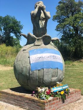 En el monumento que lo recuerda, Venancio Paz y Vidal,una bandera y una corona de flores son la expresión del agradecimiento por todo lo que dio por la celeste y blanca y el dolor de la partida del más grande del fútbol mundial. Al diez mundial y un monumento que cobra mayor importancia en el recuerdo del mito argentino, de la leyenda que quedará por siempre en el corazón de todos.
