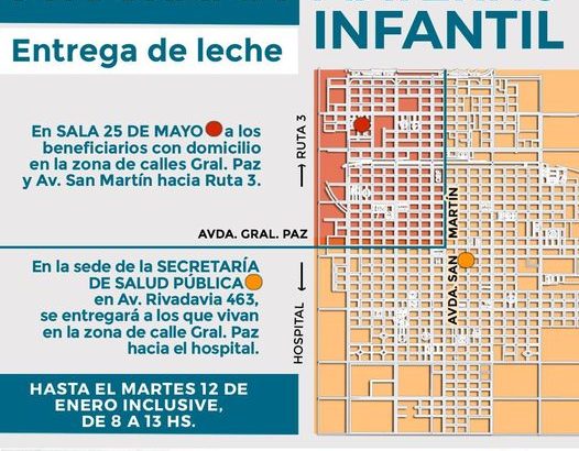 La Secretaría de Salud Pública informa a los beneficiarios del Programa Materno Infantil que hasta el martes 12 de enero inclusive, la entrega de leche se hará de la siguiente manera: