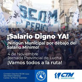 Este 4 de noviembre movilizaremos a la ruta desde todos los municipios de la provincia de Jujuy, con la fuerza y legitimidad de nuestro reclamo, convencidos que la lucha es el camino para conquistar nuestros derechos económicos y laborales avasallados.