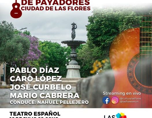 Enmarcado dentro del mes de los Payadores y de los festejos patronales de nuestra ciudad, en el histórico Teatro Español de Las Flores, subirán al escenario el uruguayo José Curbelo, Pablo Díaz, Mario Cabrera y la chilena Caro López.