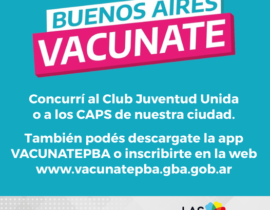 Además, solicitar a la población en general, mayor de 18 años y a las personas con discapacidad a que se anoten en el plan de vacunación optativo de Covid-19 en la web de vacunatepba.gba.gob.ar, en la app VACUNATEPBA o en las sedes antes mencionadas.
