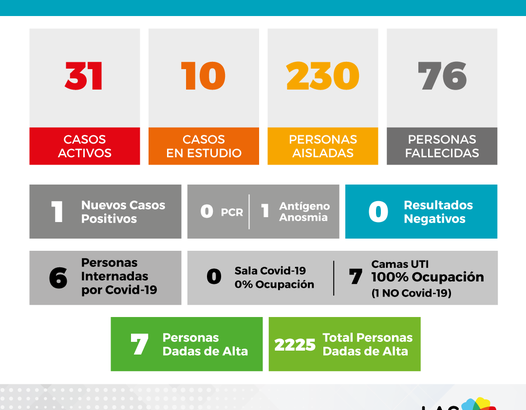 Al día de la fecha hay un total de 31 casos activos por Covid-19.